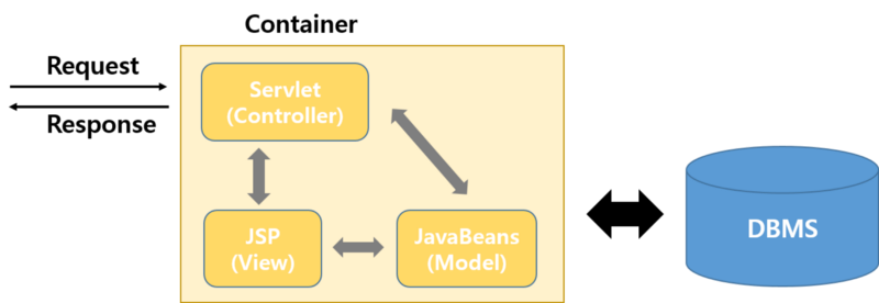 - Model : Controller의 의뢰를 통해 CRUD를 DBMS에게 요청하고, 그 결과를 Controller에게 돌려준다.