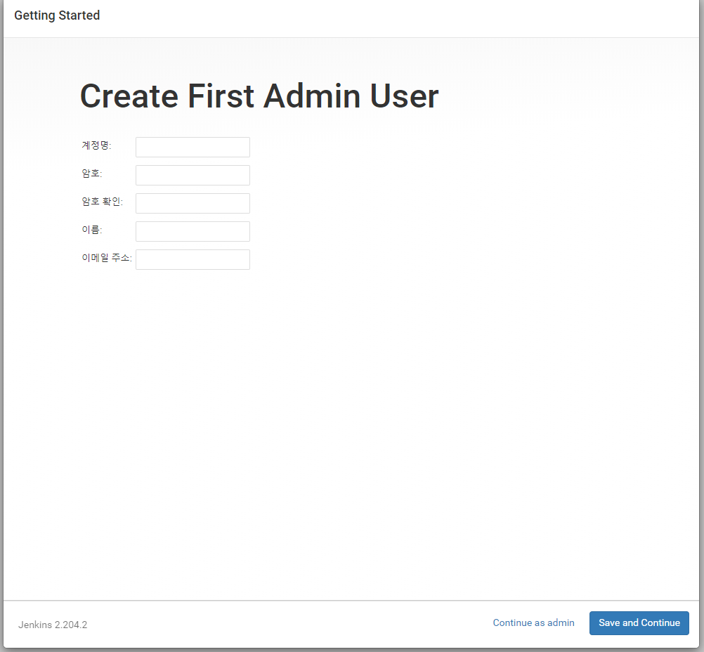 다음 접속부터 사용할 관리자 계정 정보를 등록합니다.