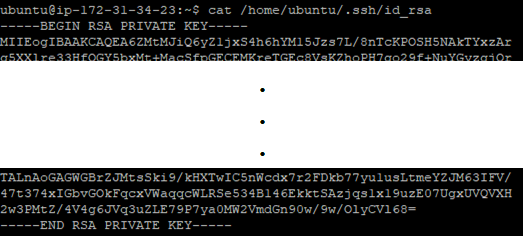 cat /home/ubuntu/.ssh/id_rsa를 통해 출력되는 key를 복사합니다.