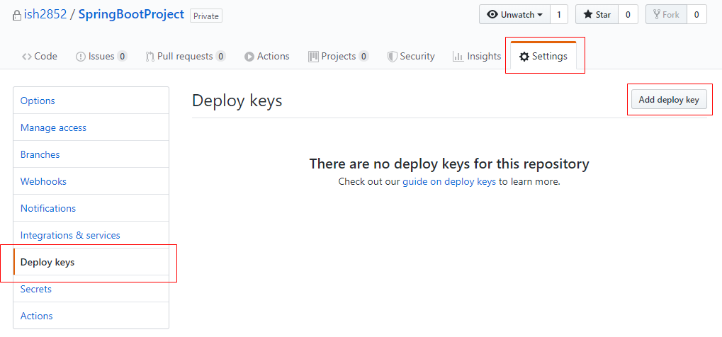 다음 그림과 같이 접속하여 deploy key를 생성합니다.