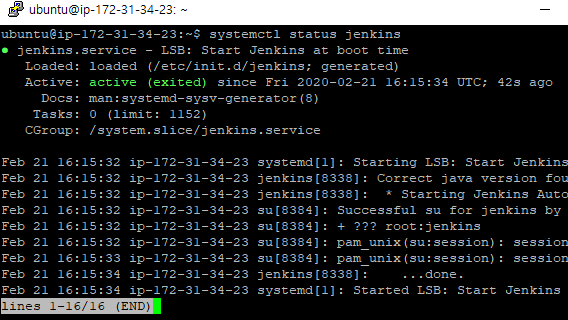 설치가 된 후 systemctl status jenkins를 통해 jenkins가 설치가 되고 작동하고 있는 모습을 볼 수 있습니다.