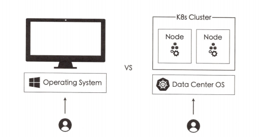 쿠버네티스가 여러 컴퓨터의 집합으로 이루어진 하나의 거대한 시스템을 추상적으로 제어할 수 있는 사용자 인터페이스를 제공하는 프로그램(컨테이너)이 정상적으로 실행될 수 있게 여러 가지 기능을 제공하는 플랫폼입니다. 때문에 쿠버네티스는 데이터 센터(or 클러스터) 운영체제라고 할 수 있습니다.