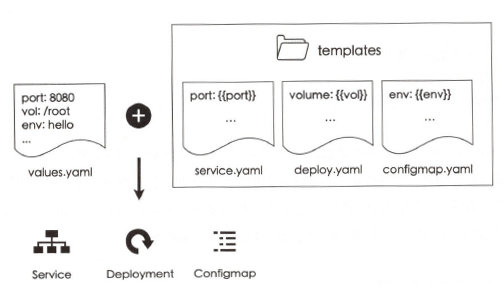 - templates/ 디렉토리 : 설치할 리소스 파일들이 존재하는 디렉토리입니다. 디렉토리 안에는 Deployment, Service 같은 쿠버네티스 리소스가 YAML 파일 형태로 저장되어 있으며 각 파일의 설정값은 비워져 있고(placeholder) values.yaml 설정값들로 채워집니다.