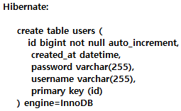 application을 실행하면 콘솔에 Table이 자동 생성된 것을 확인할 수 있다.